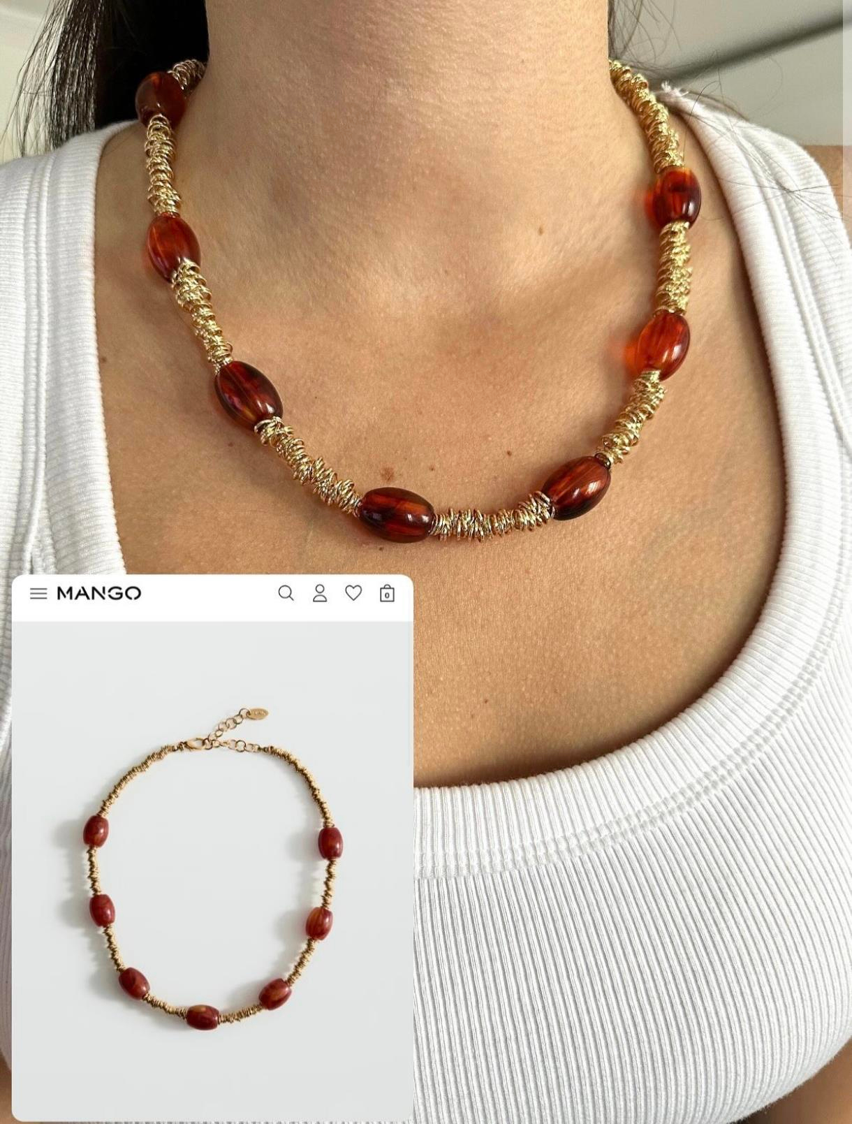 Açık Kahve Boncuklu,Sarı Metal Karışım Kolye
