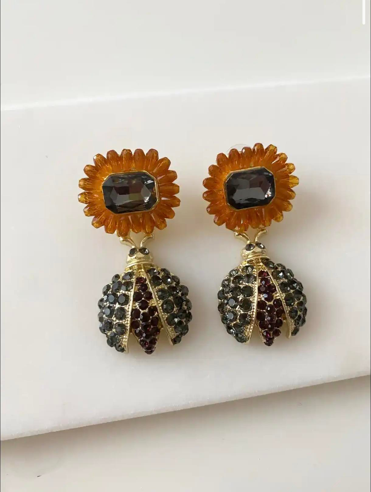 Ayçiçeği, Arılı Parlak Taşlı Küpe
