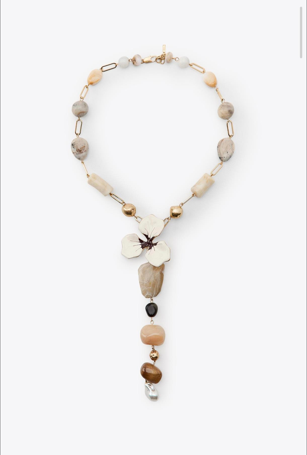 Mine Çiçekli Kemik Boncuklu Kolye